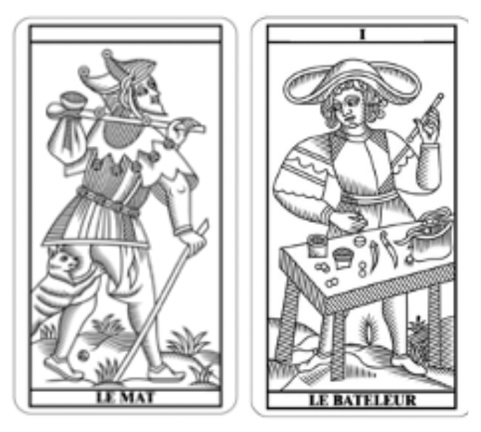Þ Le mat et le bateleur symbolisent le fait de déballer son sac.